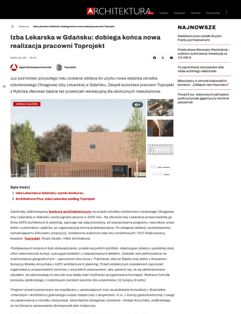 A compilation of publications on Toprojekt’s projects and realizations — featured in architecture-focused publications and exhibitions.