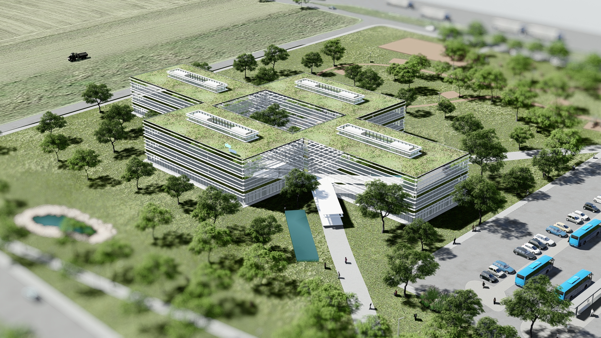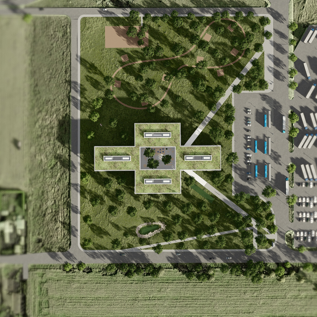 Eko Okna Biurowiec II / 2021Rok2021InwestorEko Okna S.A.LokalizacjaKornicePowierzchnia4 600m2Zespółarch. Marek Wawrzyniakarch. Karol Wawrzyniakarch. Pushkaraj Tambdeymgr inż Adriana Łukowskateren Film detal Widok z ptaku