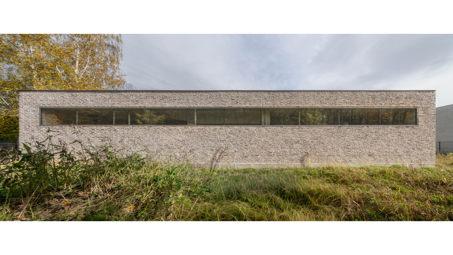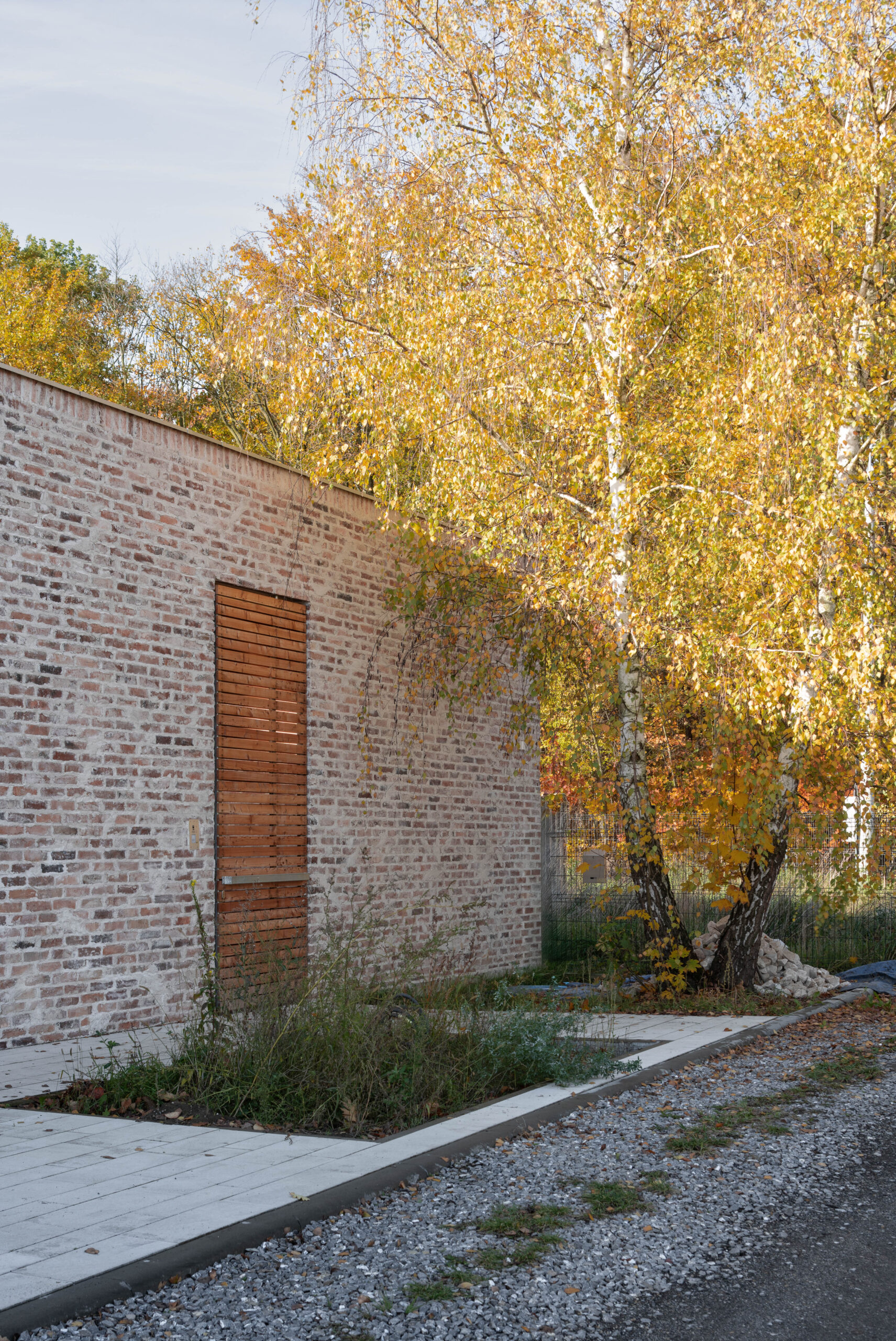 Elewacje prostopadłe do ulicy Granicznej są pozbawione okien. Ściany budynku pokryte zostały porowatymi cegłami, od których odbija się światło.