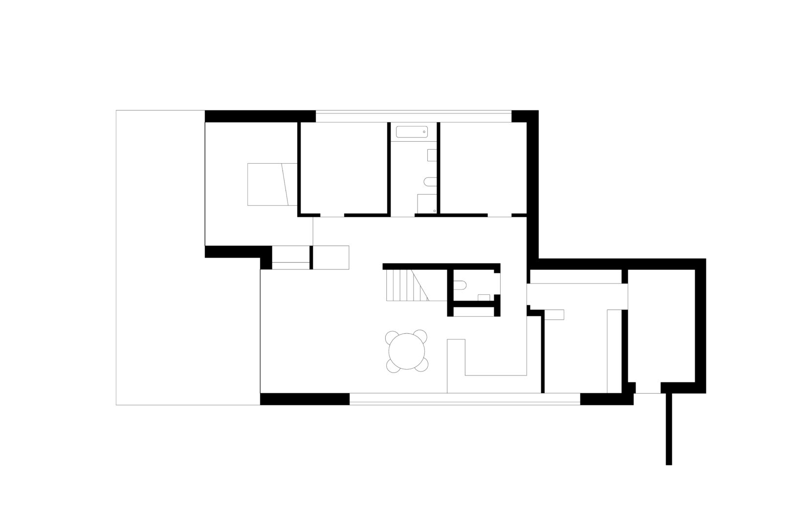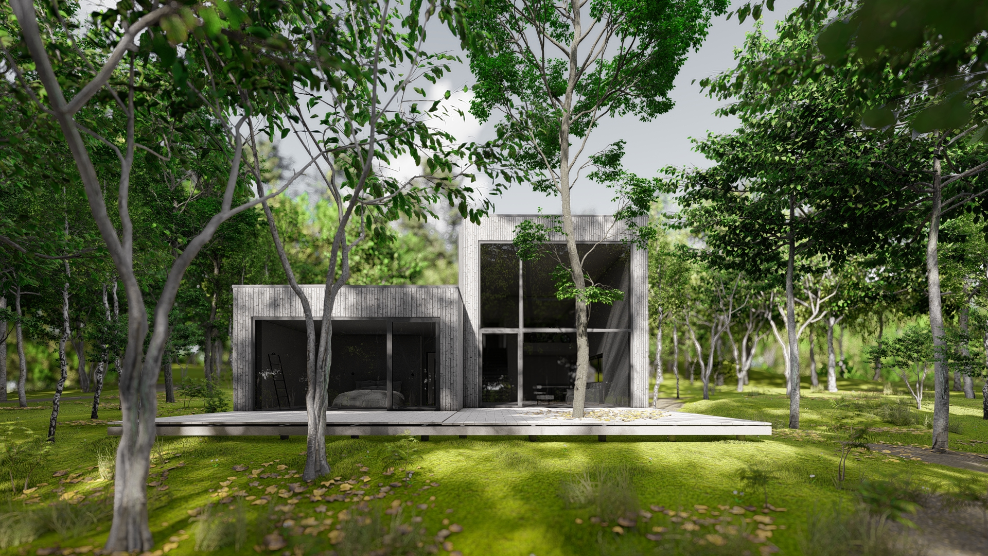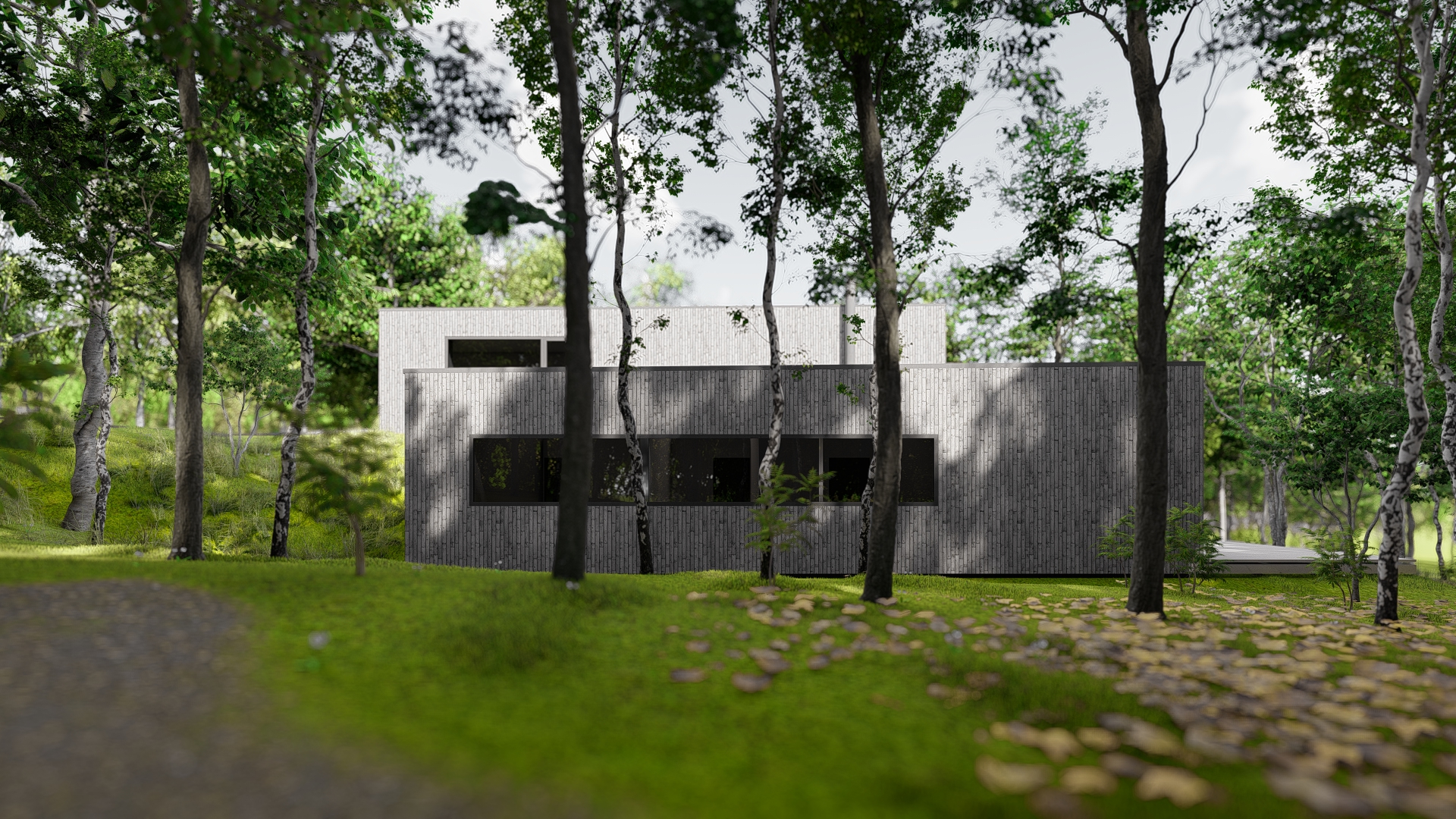 Dom zaprojektowano na niekarczowanej od lat, stromej działce na skraju osiedla domów jednorodzinnych w Rybniku. Obiekt usytuowano tak by zminimalizować wycinkę drzew. Duża różnica poziomów terenu pozwoliła na zaprojektowaniu niestandarowego układu funkcjonalnego, w którym garaż przybrał formę antresoli z wyeksponowanym na pokój dzienny motocyklem.