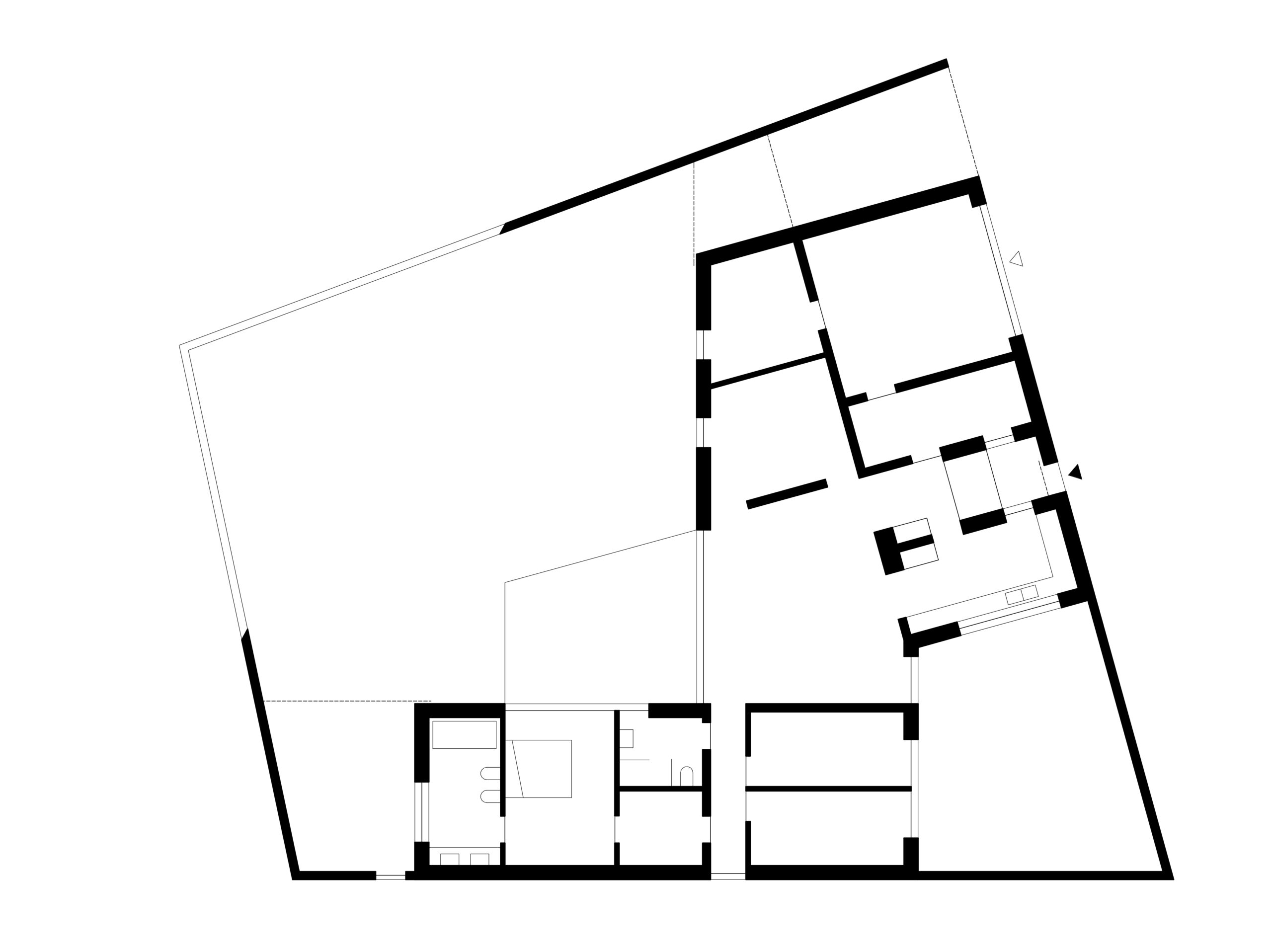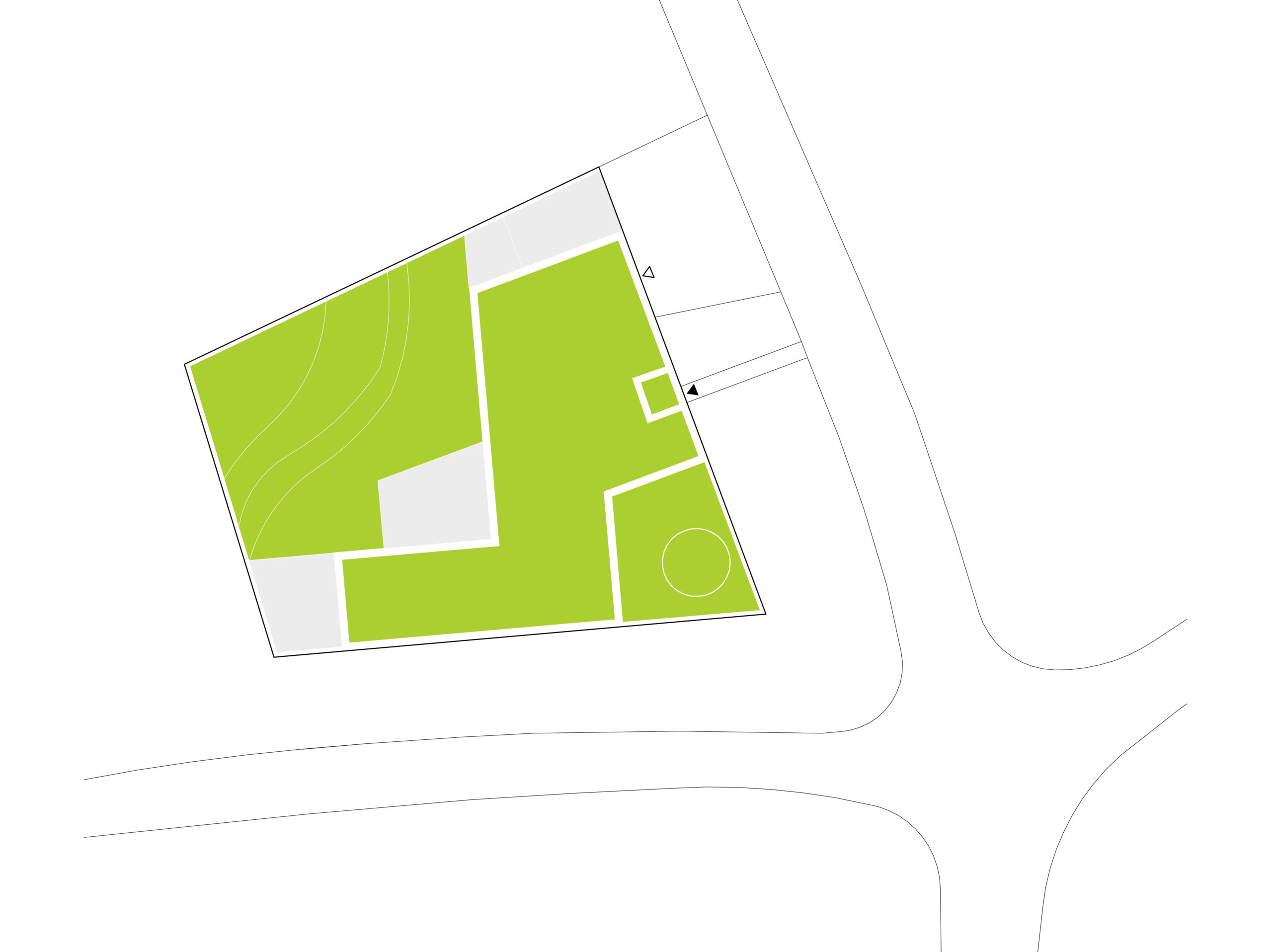 Ściany „od dróg” przeciągnięte zostały dookoła działki, a obniżają się jedynie w narożniku w kierunku widoku na rozległe pola. Ten kierunek w dającej się przewidzieć perspektywie pozostanie niezabudowany. „Skadrowany obraz” daje piękną perspektywę z tarasu i ogrodu.