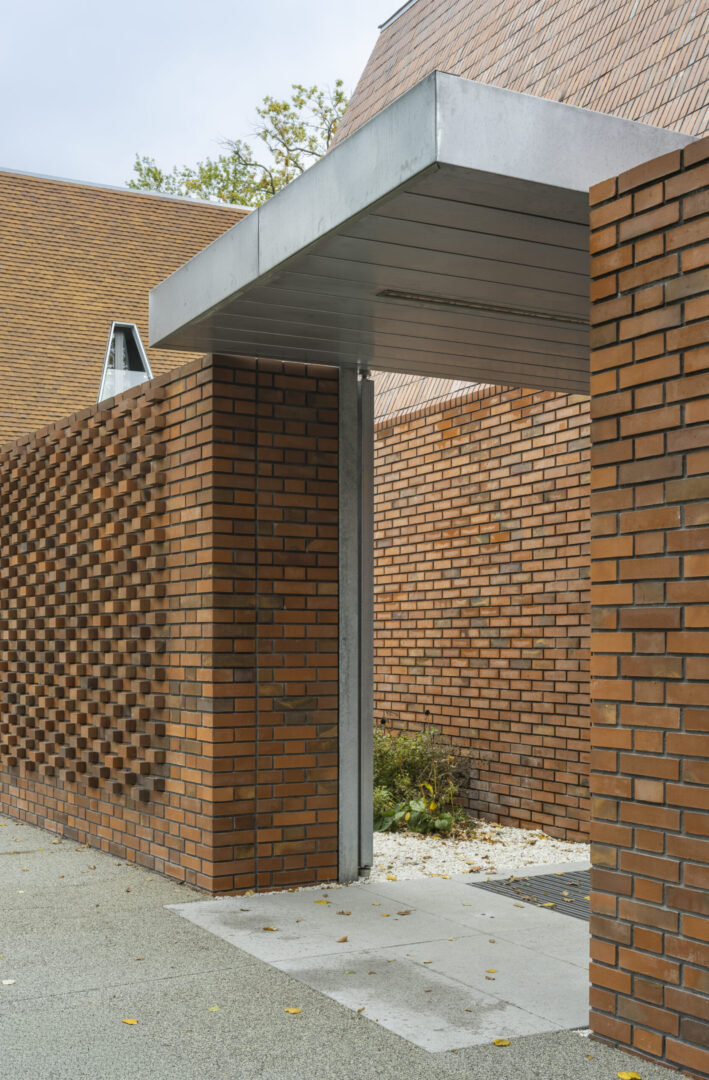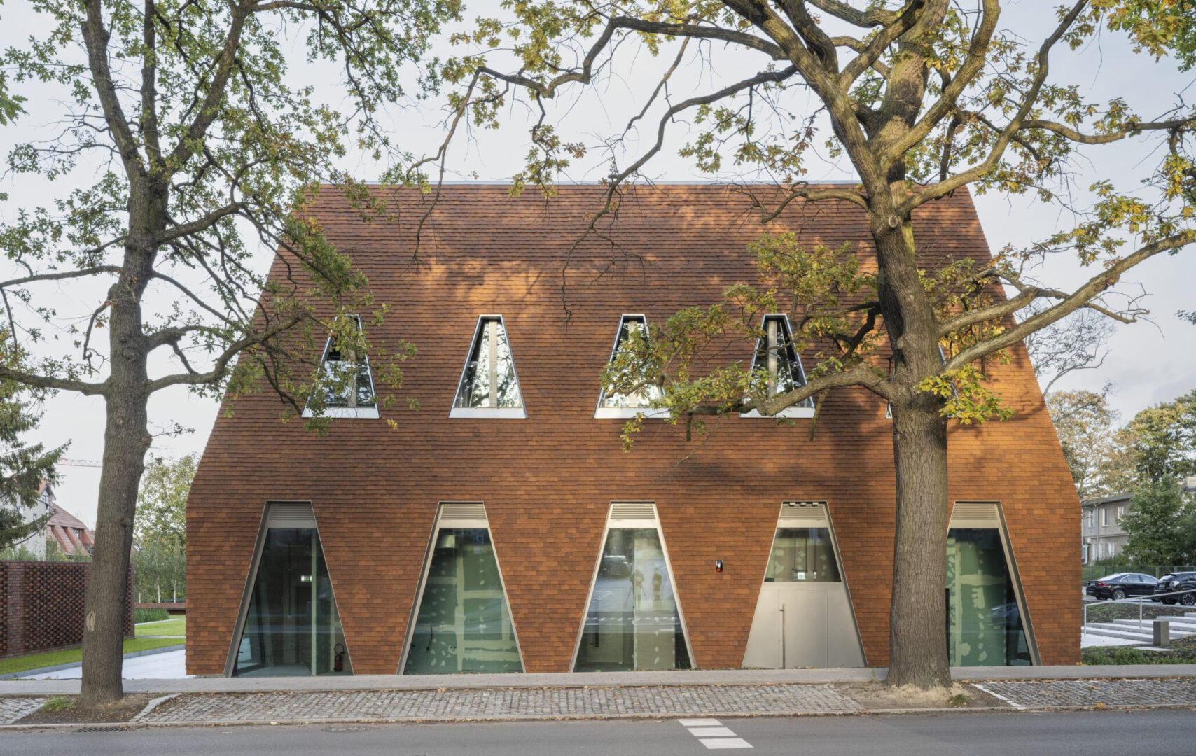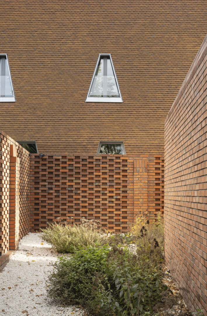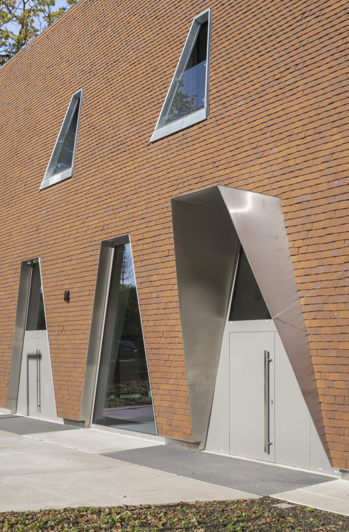 Główna bryła została zaprojektowana jako wolnostojący, osiowy i symetryczny obiekt utrzymany w charakterze pawilonu zatopionego w zieleni parkowej. W budynku mieści się większość programu Ośrodka w tym parking na 53 samochody, pomieszczenia techniczne i część sanitariatów w części podziemnej, strefa szkoleniowo gastronomiczna w parterze i hotel na górnej kondygnacji. Program fitness zrealizowany został w oddzielnym pawilonie położonym w części działki objętej planem i posadowiony na linii historycznego podziału nieruchomości. Ażurowy mur z cegły, który otacza ceglany pawilonik wydziela intymny żwirowo – skalny ogród umieszczony w większym ogrodzie – „parku”. W dni powszednie przestrzeń ta wykorzystywana ma być do ćwiczeń na wolnym powietrzu. Możliwe jest również zamknięcie ogrodu skalnego podczas organizacji spotkań plenerowych. Pozostała część działki może pozostać wtedy nadal ogólnodostępna.