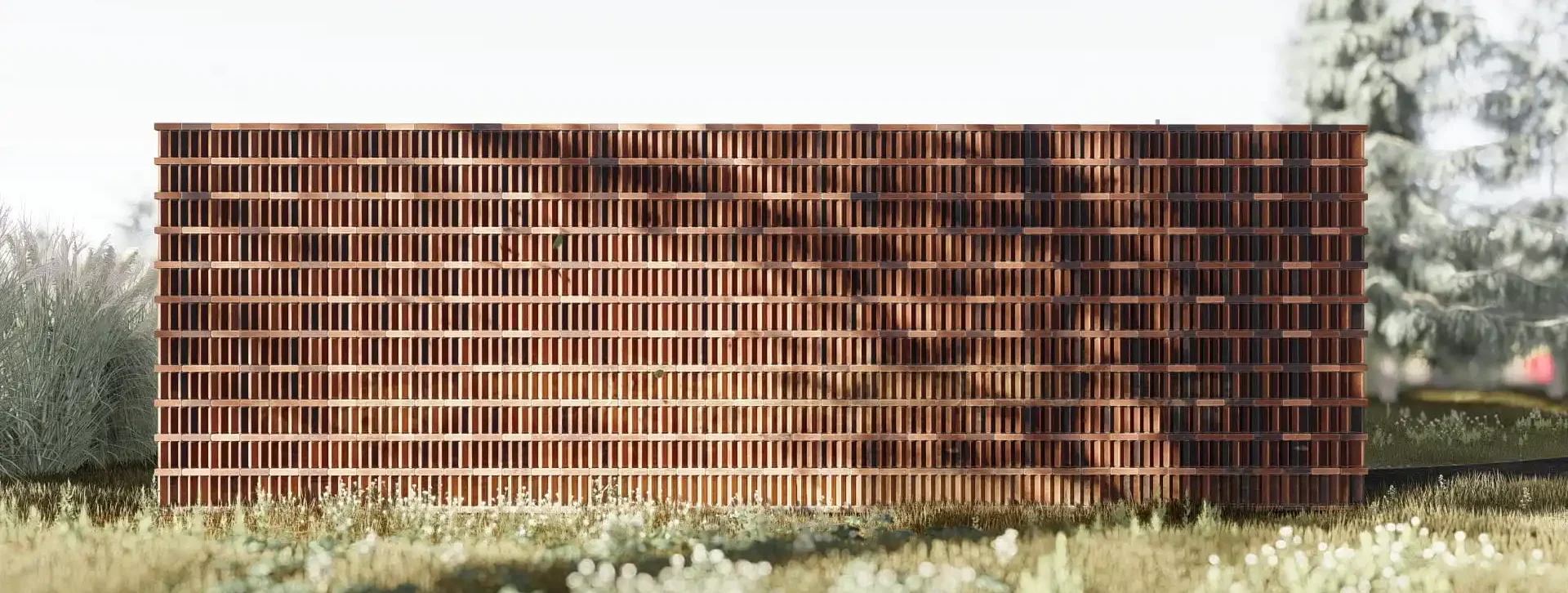 Przez ażurową ścianę za ołtarzem wpada do kaplicy rozproszone światło. W tym rozwiązaniu można odnaleźć inspirację gotyckim masferkiem, przystosowaną do współczesnego i ascetycznego charakteru wnętrza.