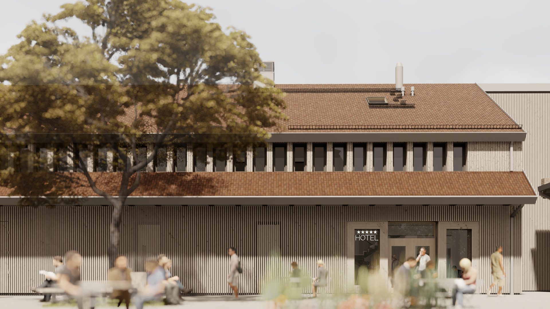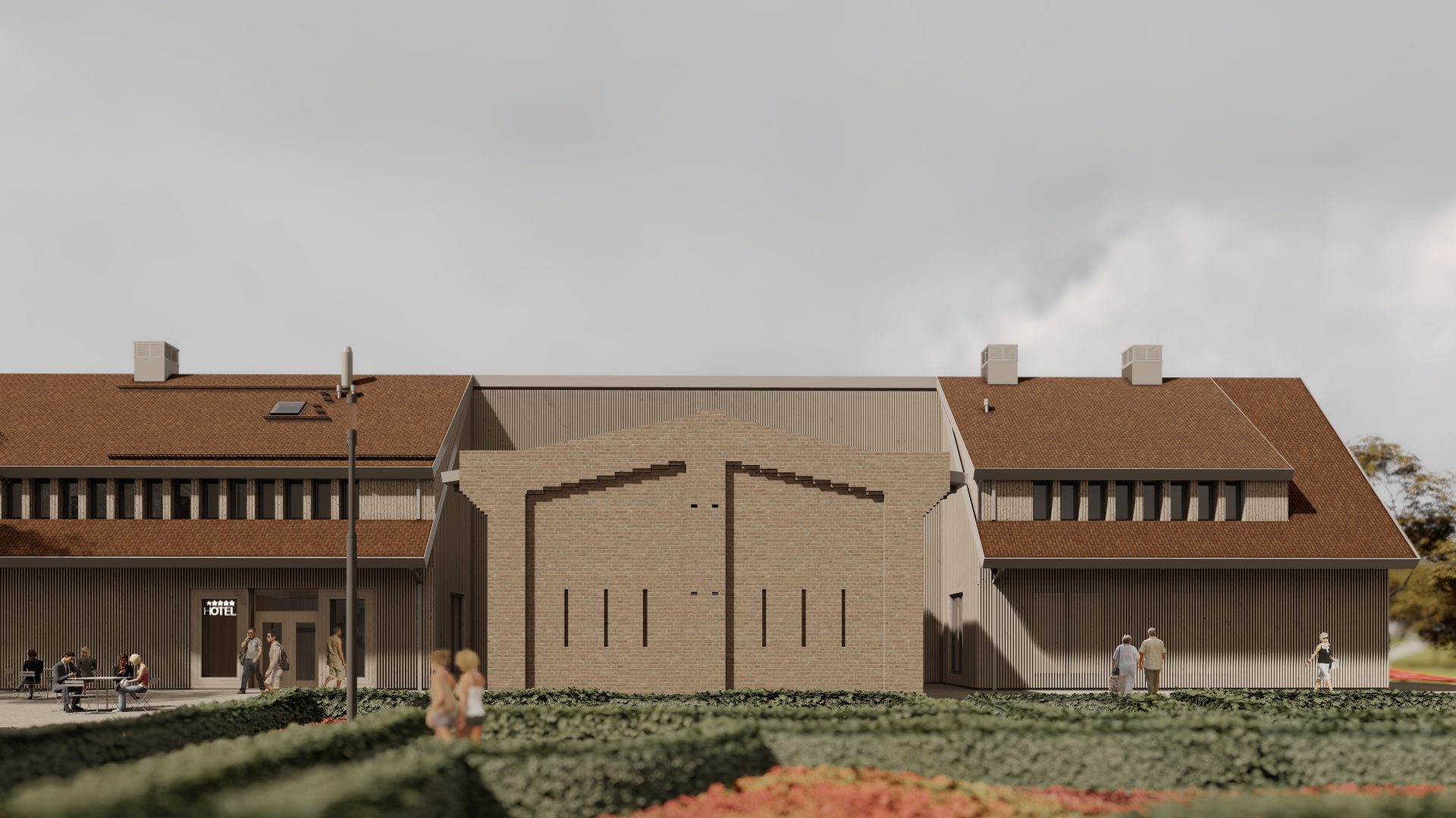 Hala wielofunkcyjna oraz małe sklepy sprzedające produkty regionalne i inne usługi, zaprojektowane zostały w byłym budynku gospodarczym. Na strychu mieszczą się pokoje hotelowe. Oprócz regularnych zajęć grupowych, odbędą się tutaj zorganizowane spotkania, uroczystości rodzinne i szkolenia biznesowe.