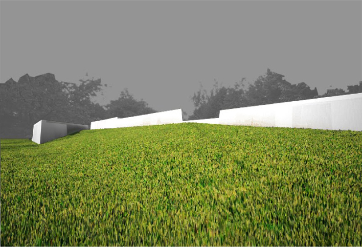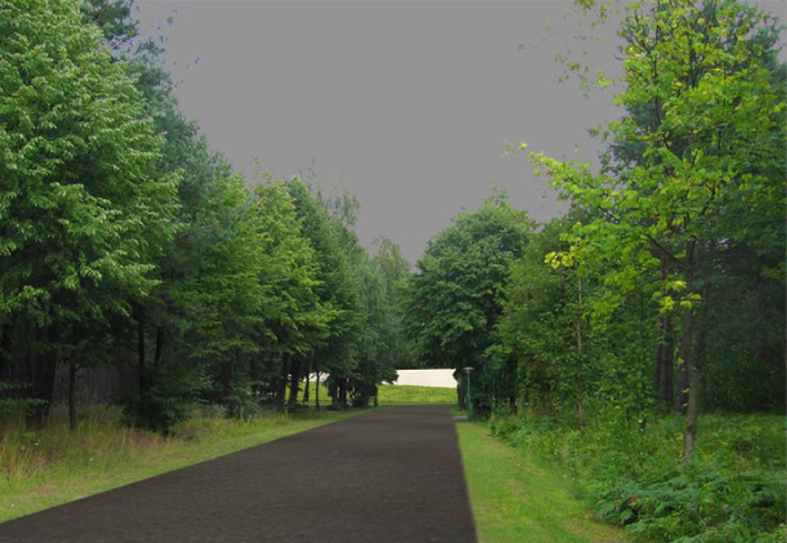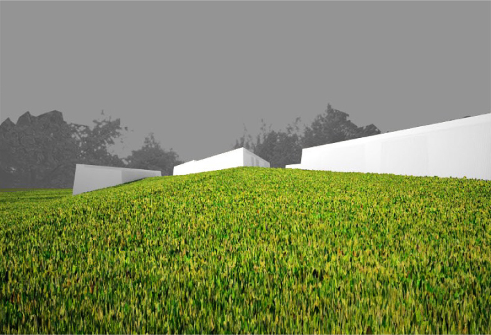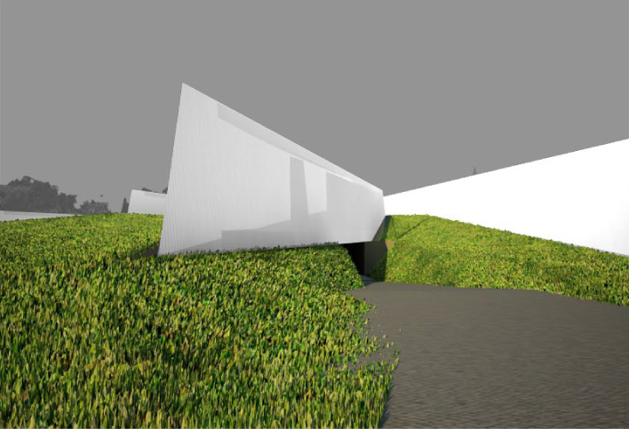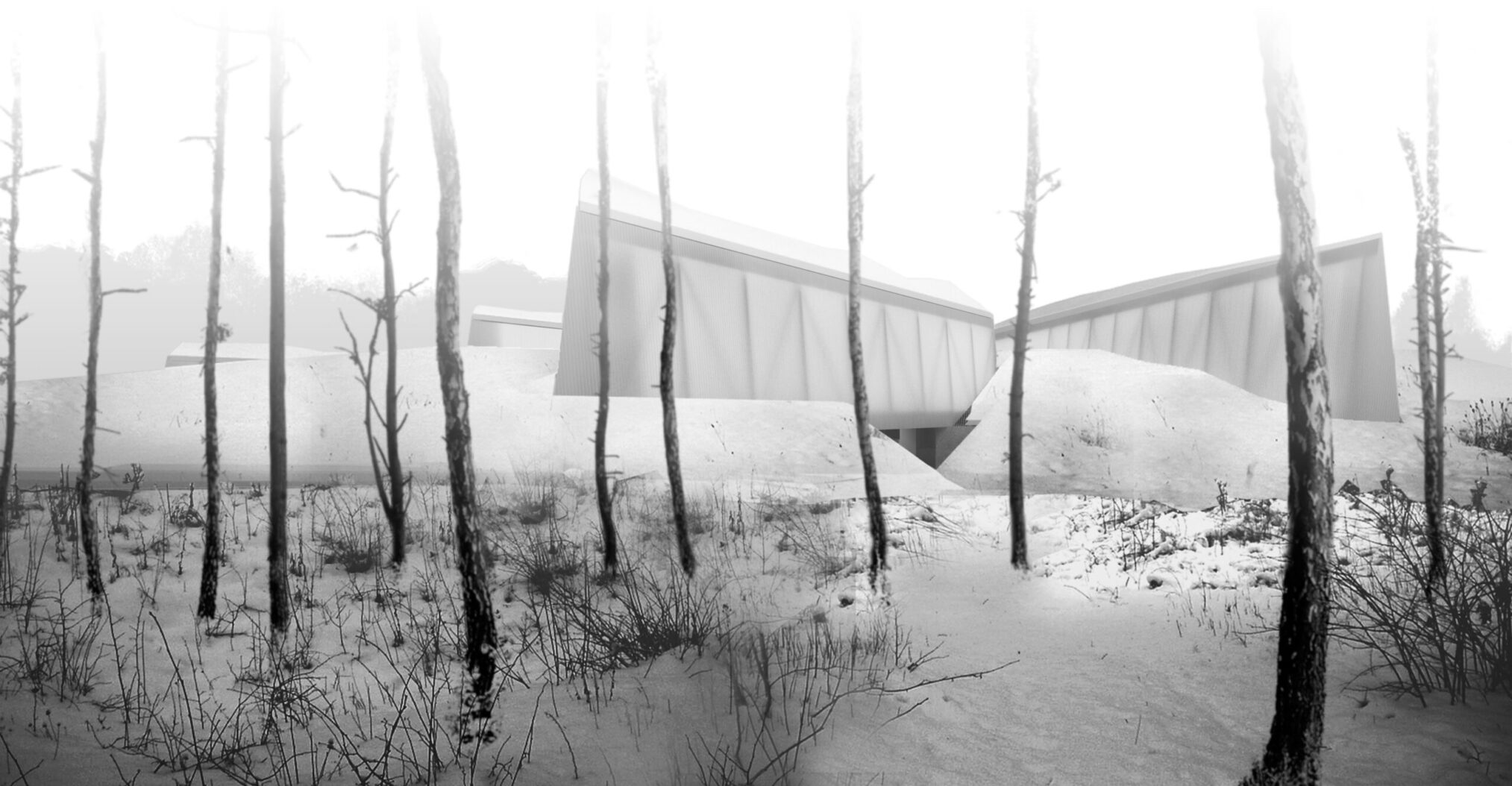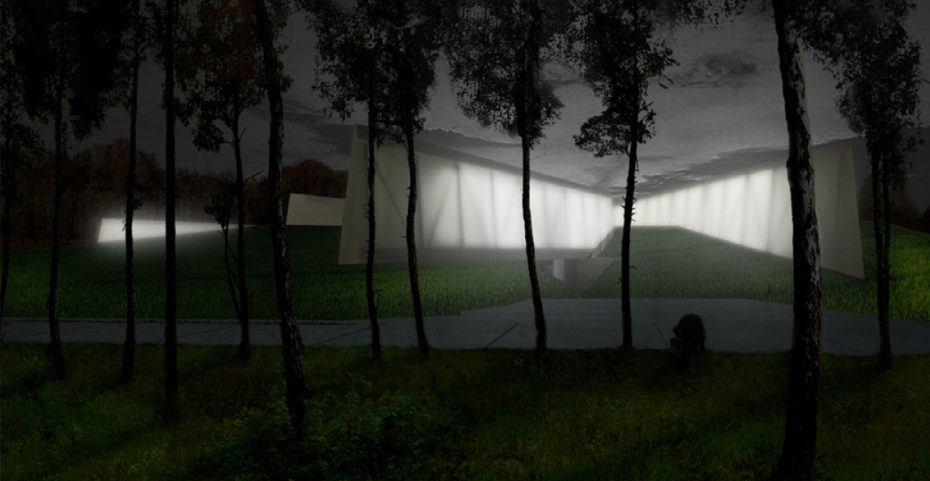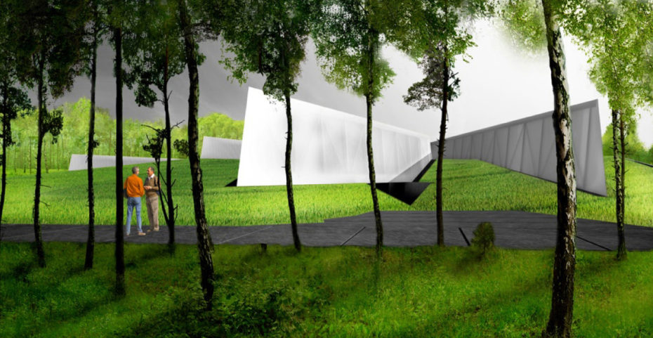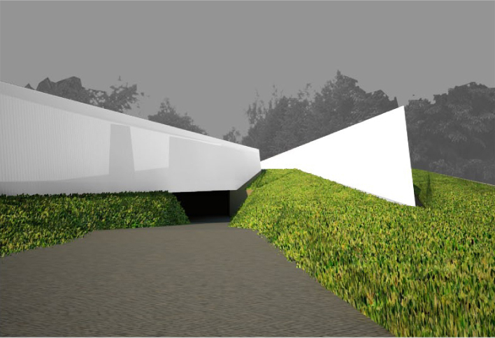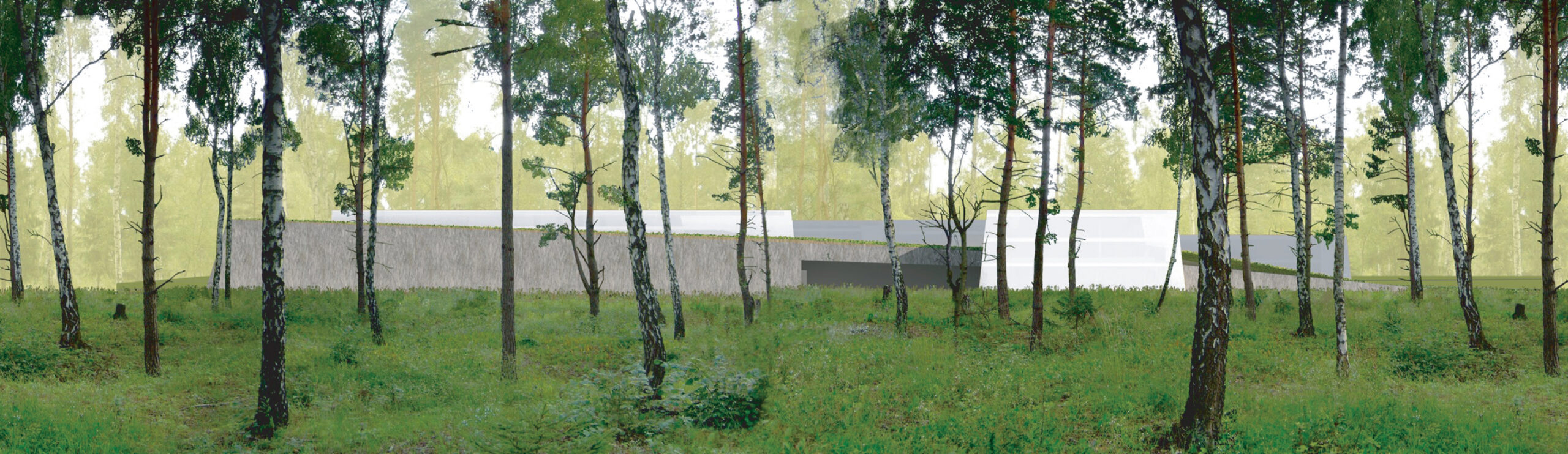 Bryła muzeum w swojej prostocie i oszczędnym wyrazie jest pełna napięcia i dynamiki, wydłużone elewacje przeciwstawiają się pionowym podziałom przesłony lasu, zza której niemal zawsze oglądany jest budynek. Z wnętrza wychodzimy ponownie na ścieżkę turystyczną, która prowadzi wzdłuż muru oporowego, poszerzając się w miejscu zaprojektowanym dla odpoczynku, oczekiwania na przewodnika etc.