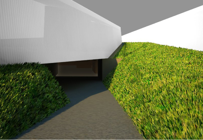 Zwiedzanie rozpoczyna się na granicy rezerwatu, gdzie znajduje się parking obsługujący ruch turystyczny. W miarę zbliżania się do muzeum, perspektywa oglądu ulega gwałtownym zmianom – widoczne z oddali białe, niewyraźne kształty z czasem przybierają postać wydłużonych sylwet, przecinających ścianę lasu. Szczególnie dynamiczny proces przebiega najbliżej muzeum: przed obserwatorem naprzemiennie otwierają i zamykają się przestrzenie pomiędzy obiektami, przedzielone ostrymi krawędziami ścian; lekkie wzniesienie i wyprowadzone ścieżki zachęcają do spacerowania pomiędzy gładkimi przegrodami. Wzniesienie ma na celu podkreślenie ważności miejsca, od strony pola górniczego polana jest okolona murem oporowym, natomiast od strony wioski neolitycznej przebiega droga dojazdowa dla pracowników oraz na zaplecze obiektu.