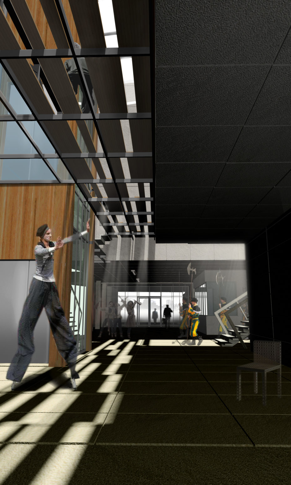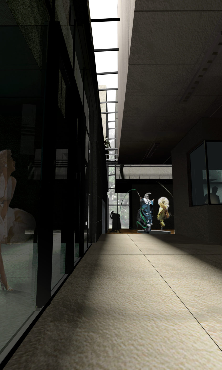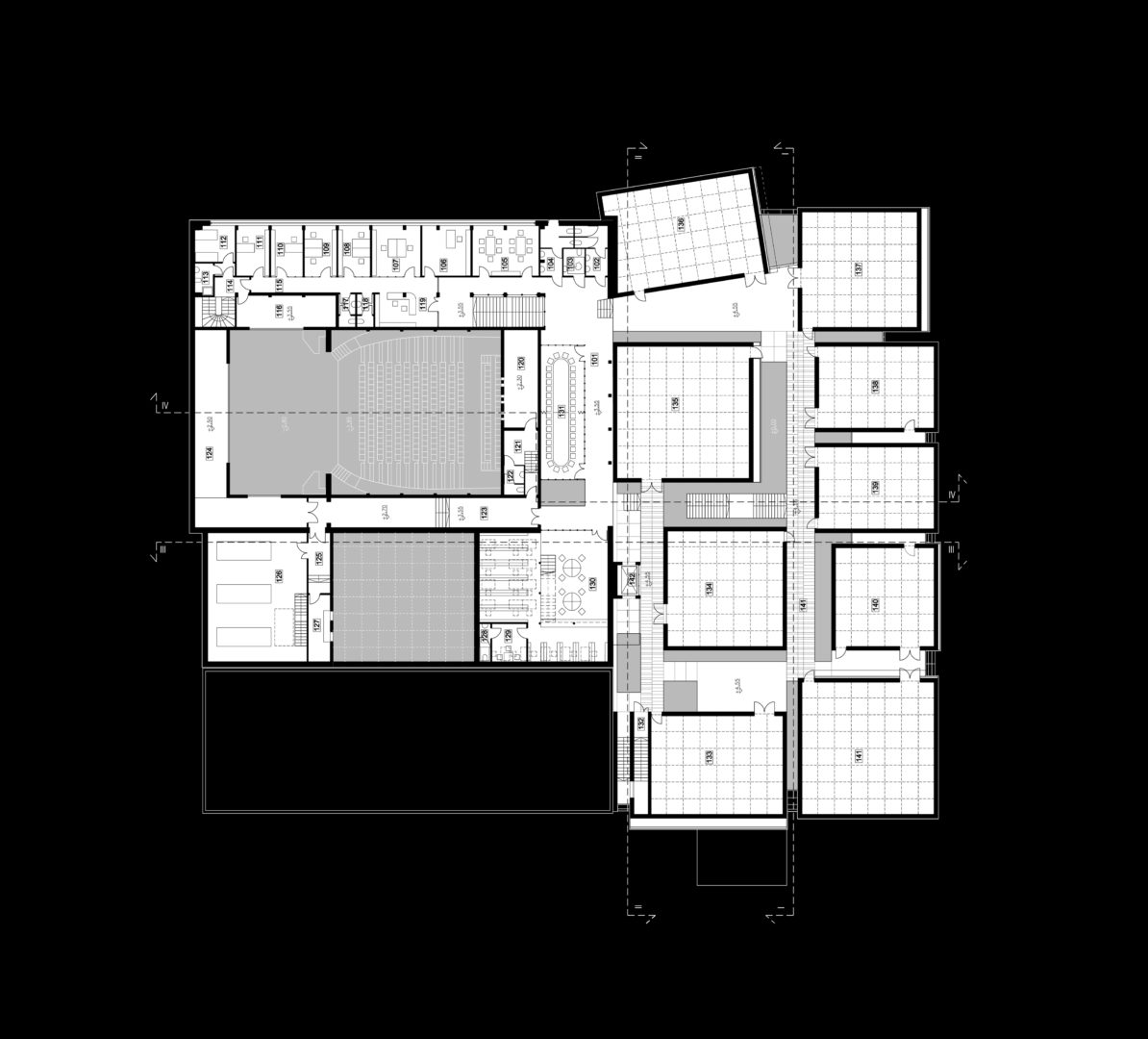Program kondygnacji dopełnia podscenie, pomieszczenia dla pracowników obsługi sceny, siłownia, pokój samorządu studenckiego i pomieszczenia techniczne.