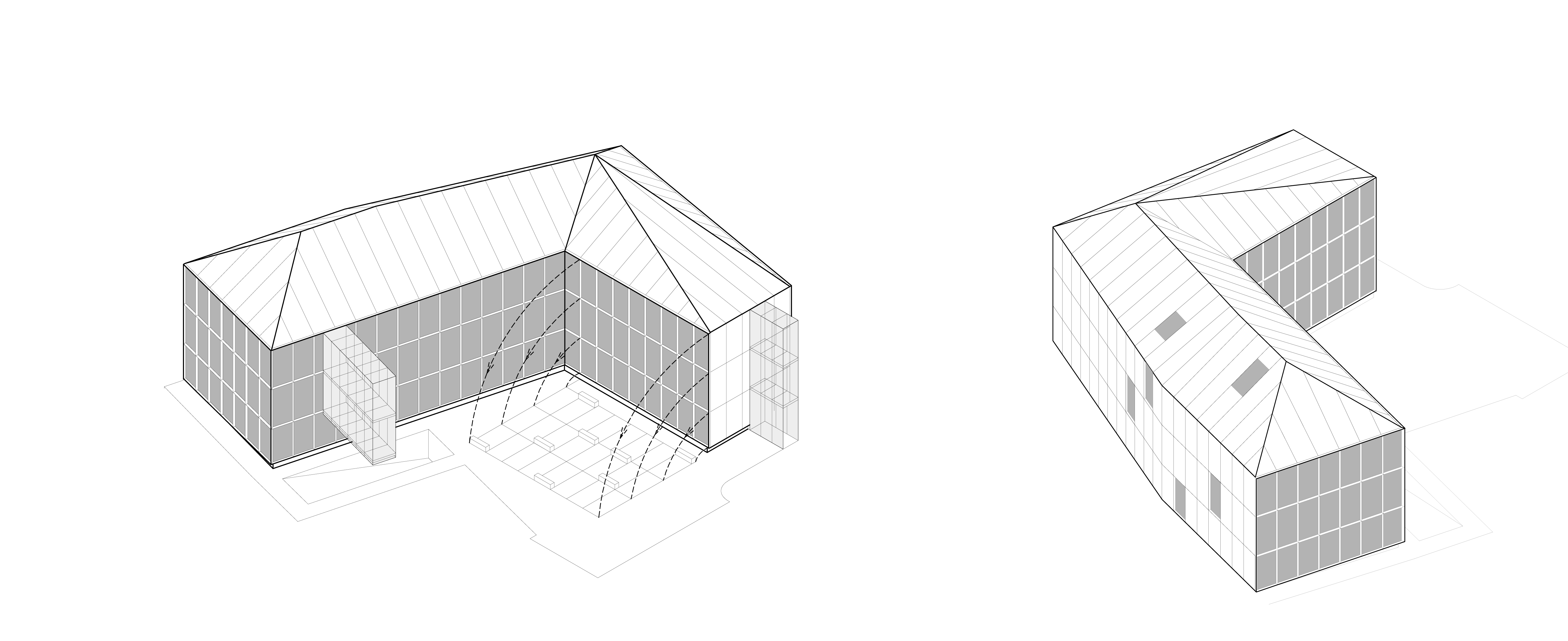 Prosty w formie, w skali oraz przekryciu dachem nawiązujący do istniejących obiektów, „ubrany” we współczesne materiały i technologie obiekt, który nie ma być cytatem z miejsca, ale czerpiącą z niego odpowiedzią.