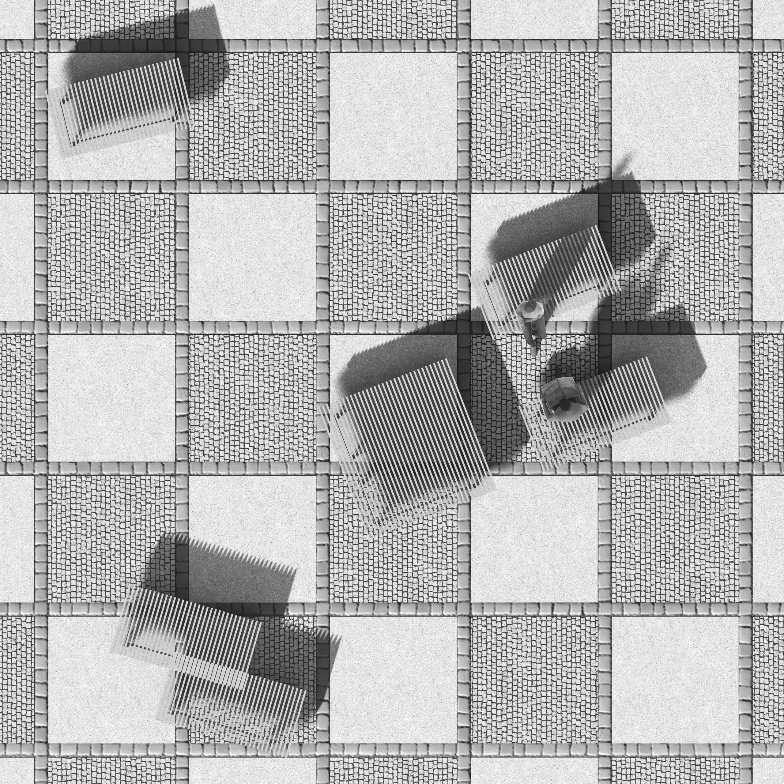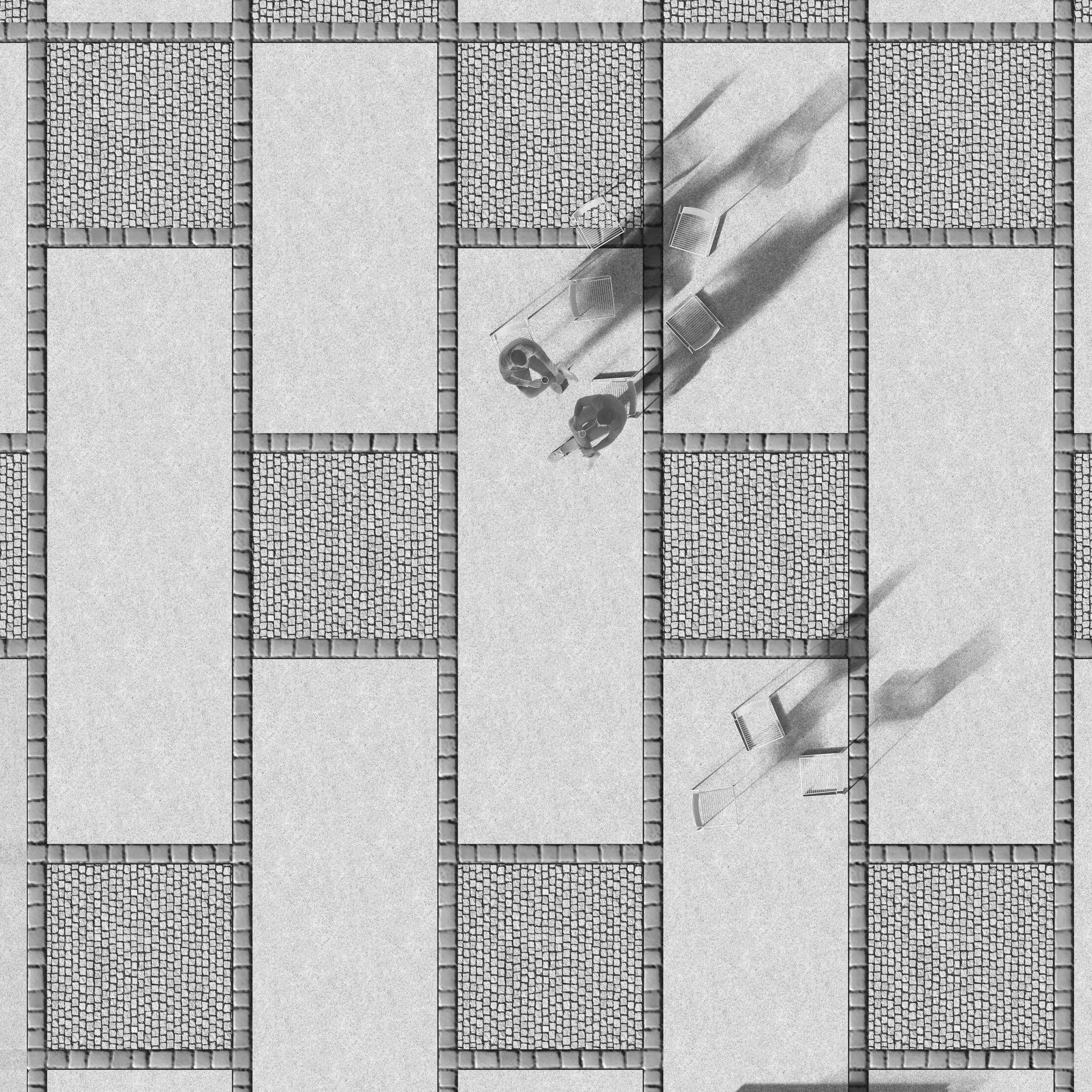 Zaproponowany rysunek posadzki podkreśla ten dualizm przestrzenny poprzez odrębne wzory dla południowej części Rynku i Placu Dominikańskiego nakładające się w części wspólnej, co tworzy wynikową szachownicę, która nie wyróżnia żadnego z dwóch składowych kierunków.