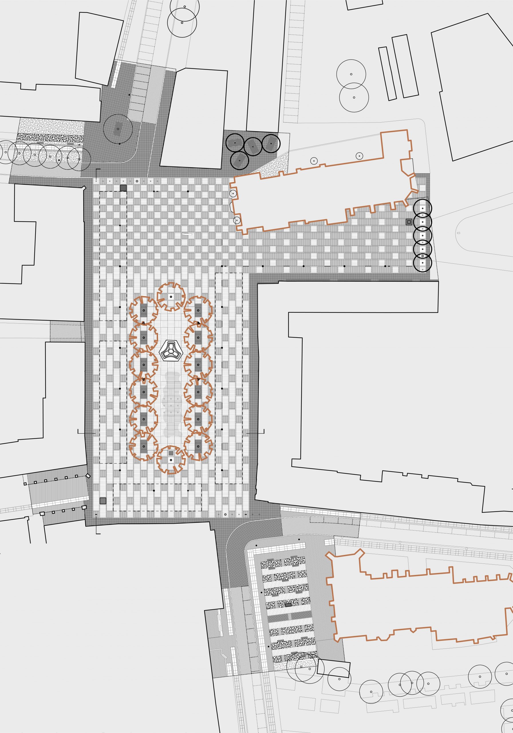 spektakli, performensów, jarmarków, zimowej ślizgawki itp. W razie potrzeby ta strefa może się poszerzać zarówno w kierunku wschodnim jak i południowym. Ruchome platformy „rozrzucone” po