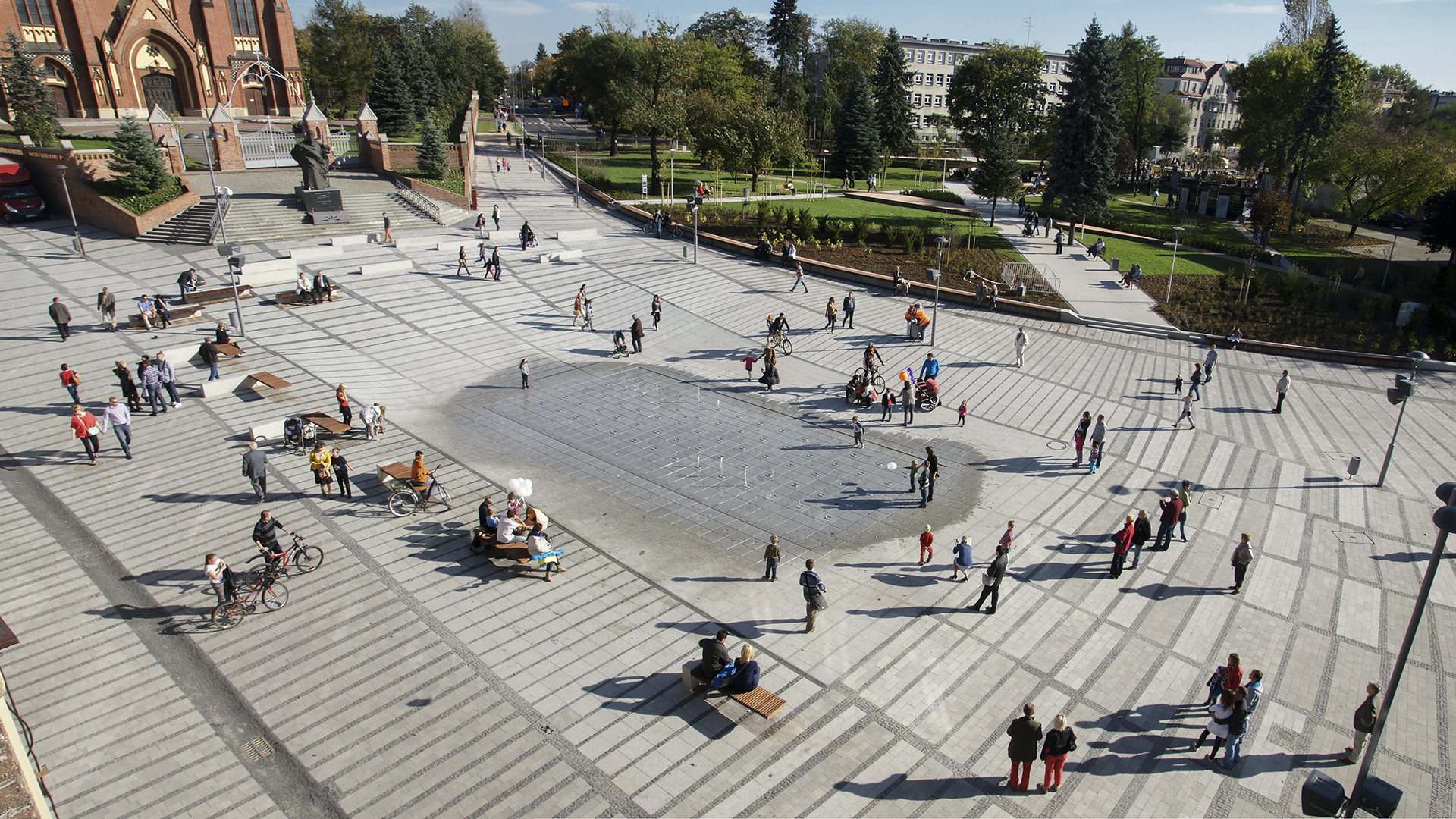 Plac przed kościołem Matki Boskiej Bolesnej stanowi drugi obok Rynku punkt zasilający deptak od strony zachodniej. W przyszłości planowane jest przedłużenie powierzchni placu w kierunku Kampusu.