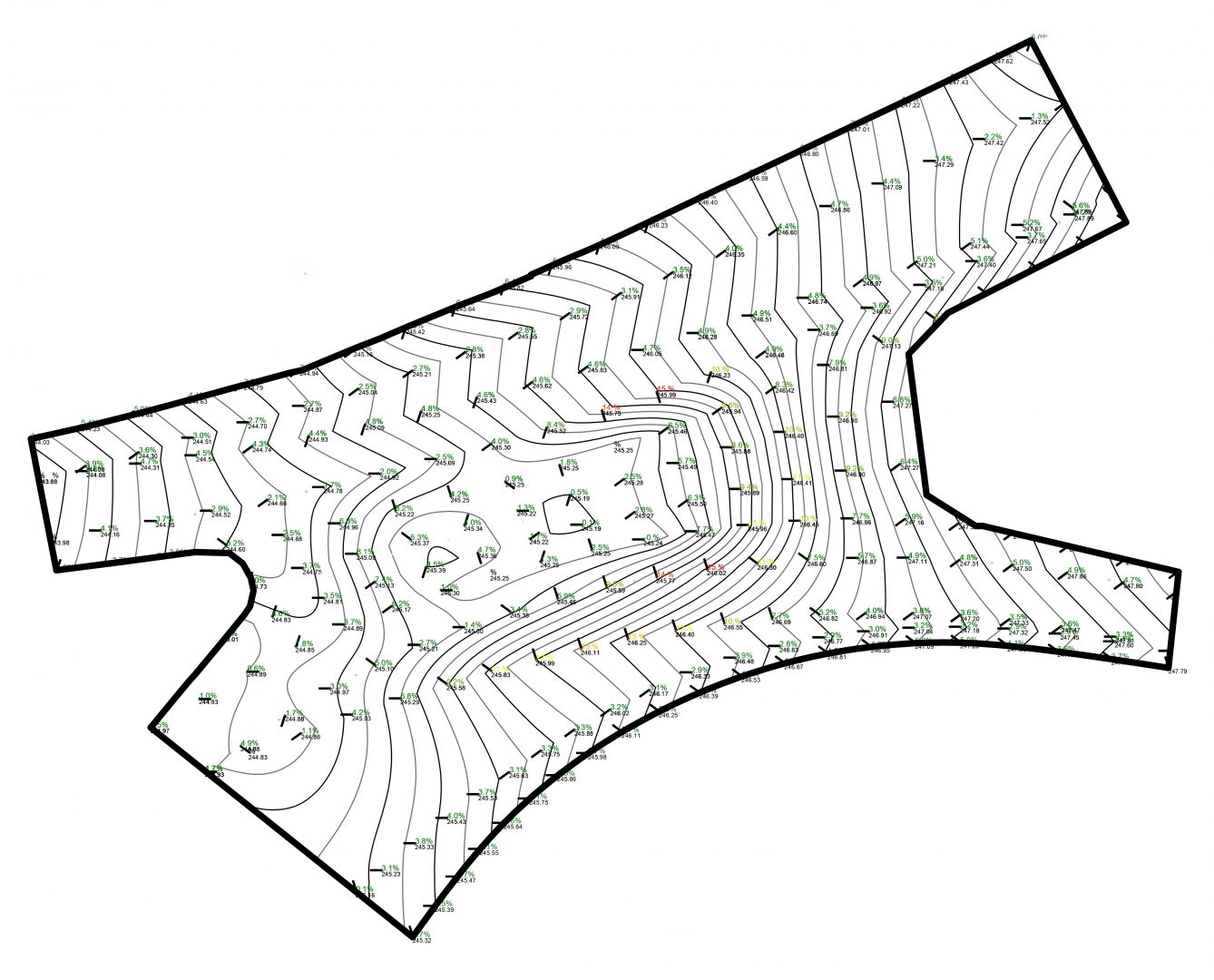 Na potrzeby projektu zostało opracowane narzędzie, które z dowolną rozdzielczością mogło opisywać kierunki i stopnie spadków dwukrzywiznowych powierzchni. Dodatkowo narzędzie pokazywało, jaka jest różnica między starą a projektowaną powierzchnią placu. Każda zmiana w geometrii generowała automatycznie wszystkie rysunki opisujące cechy projektowanej powierzchni. Dzięki temu można było spełnić te dwa pozornie wykluczające się warunki.