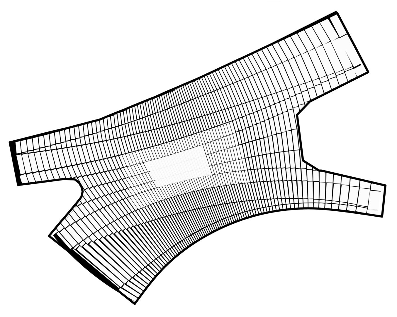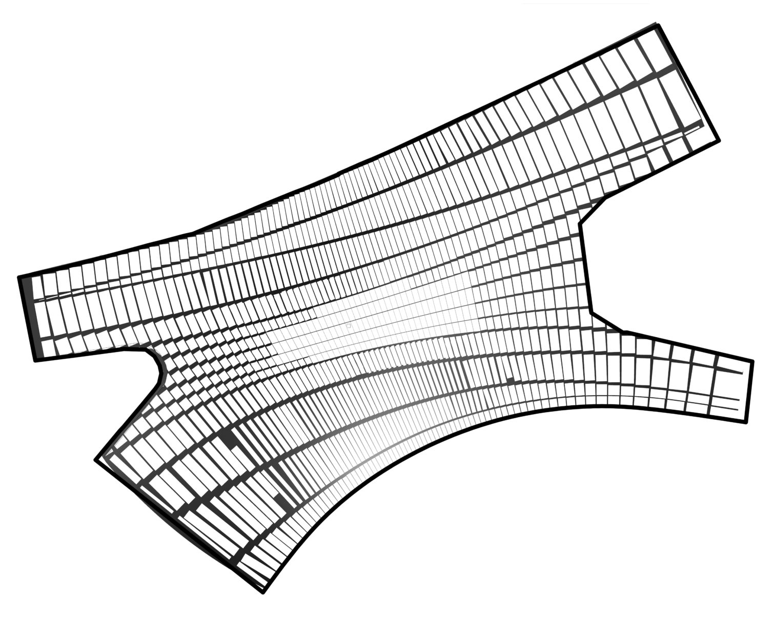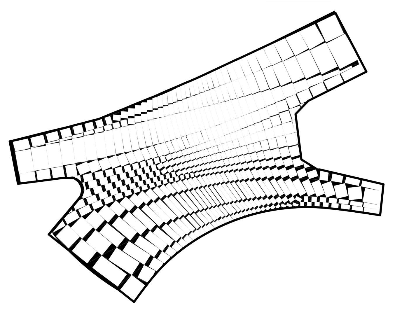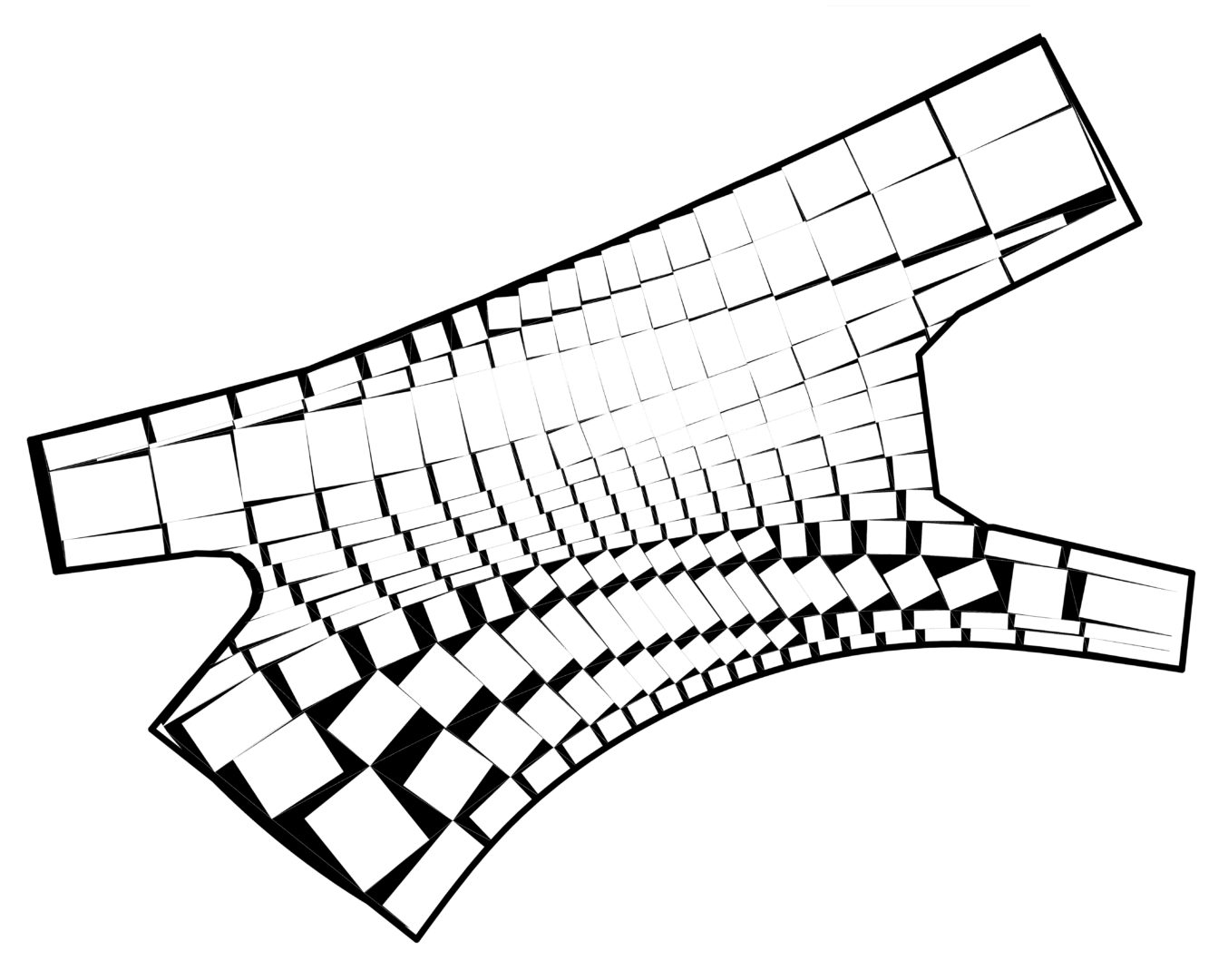 Problem sprowadzić można do zagadnienia wpisywania największego prostokąta w czworokąt. Dodatkowo ważne było zapewnienie minimalnych i maksymalnych odstępów między polami. Przetestowano różne rodzaje algorytmu, które realizowały te warunki. Algorytm był modyfikowany, co implikowało zmianę wzoru całości nawierzchni. Problematyka ta jest nietypowa dla warsztatu architekta, ale przekłada się w sposób bezpośredni na materialność projektu. Choć wszystkie aspekty wzoru można byłoby sparametryzować, to opisywane w taki sposób były tylko generalne założenia wzoru. Rysunki, które łatwiej było zrobić w klasyczny sposób, nie były generowane.