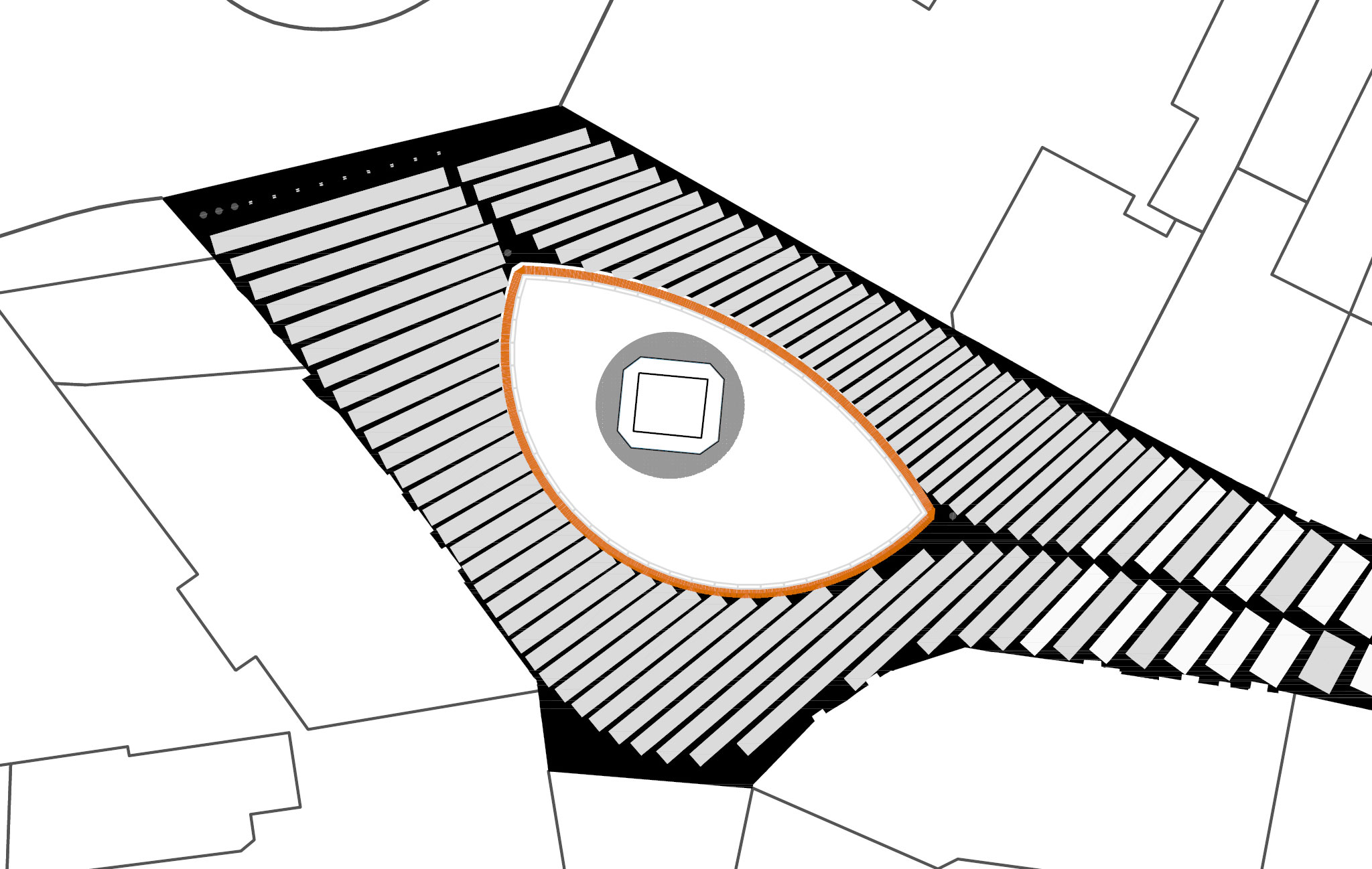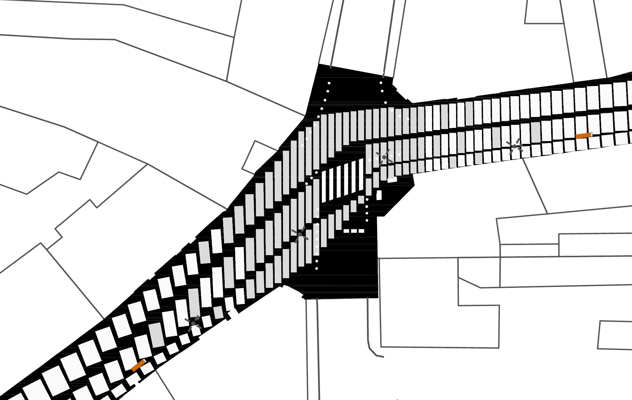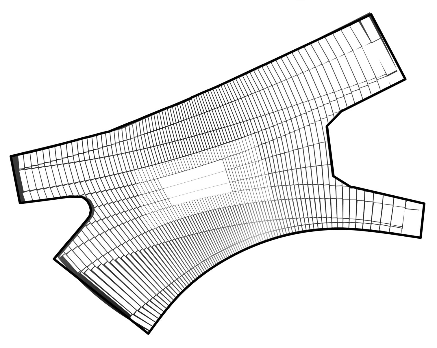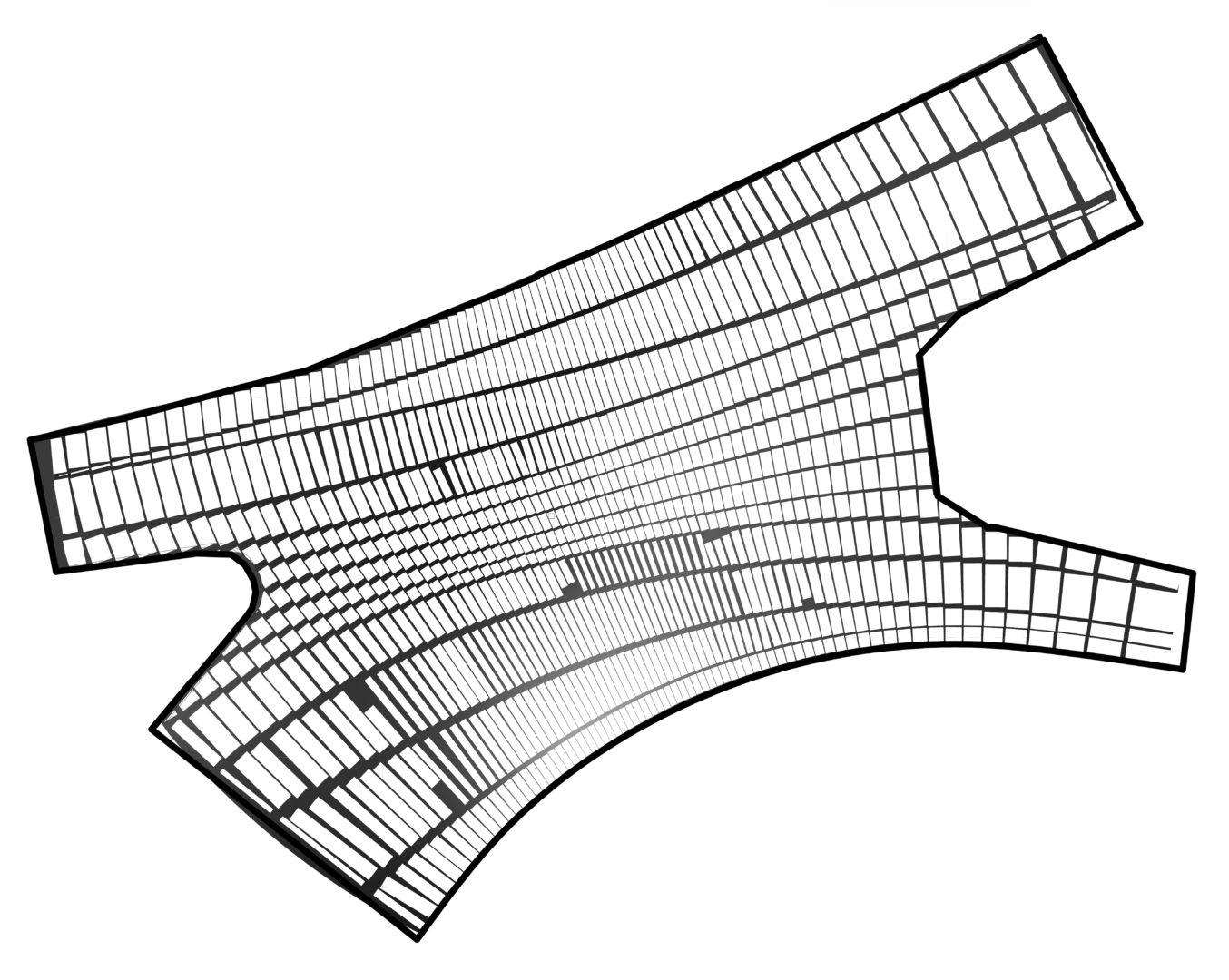 Problem sprowadzić można do zagadnienia wpisywania największego prostokąta w czworokąt. Dodatkowo ważne było zapewnienie minimalnych i maksymalnych odstępów między polami. Przetestowano różne rodzaje algorytmu, które realizowały te warunki. Algorytm był modyfikowany, co implikowało zmianę wzoru całości nawierzchni. Problematyka ta jest nietypowa dla warsztatu architekta, ale przekłada się w sposób bezpośredni na materialność projektu. Choć wszystkie aspekty wzoru można byłoby sparametryzować, to opisywane w taki sposób były tylko generalne założenia wzoru. Rysunki, które łatwiej było zrobić w klasyczny sposób, nie były generowane.