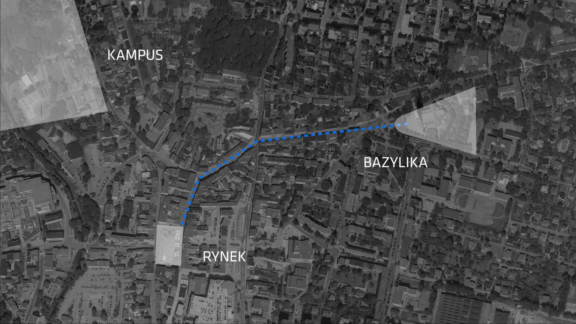 Po wstępnej analizie w zakres opracowania postanowiono wciągnąć ulicę Św. Jana z dojściem do Kampusu oraz skwer przy Placu Jana Pawła II.