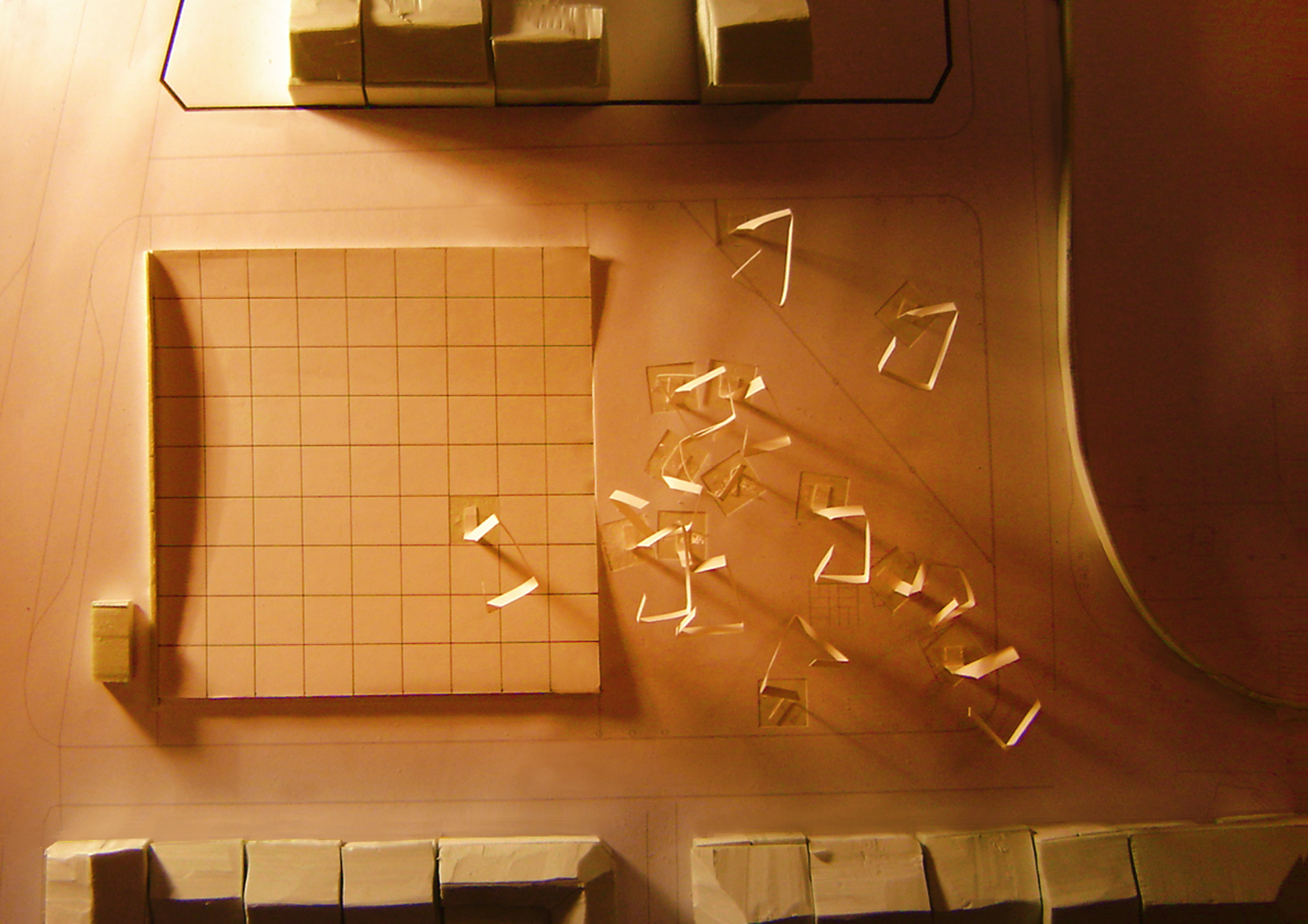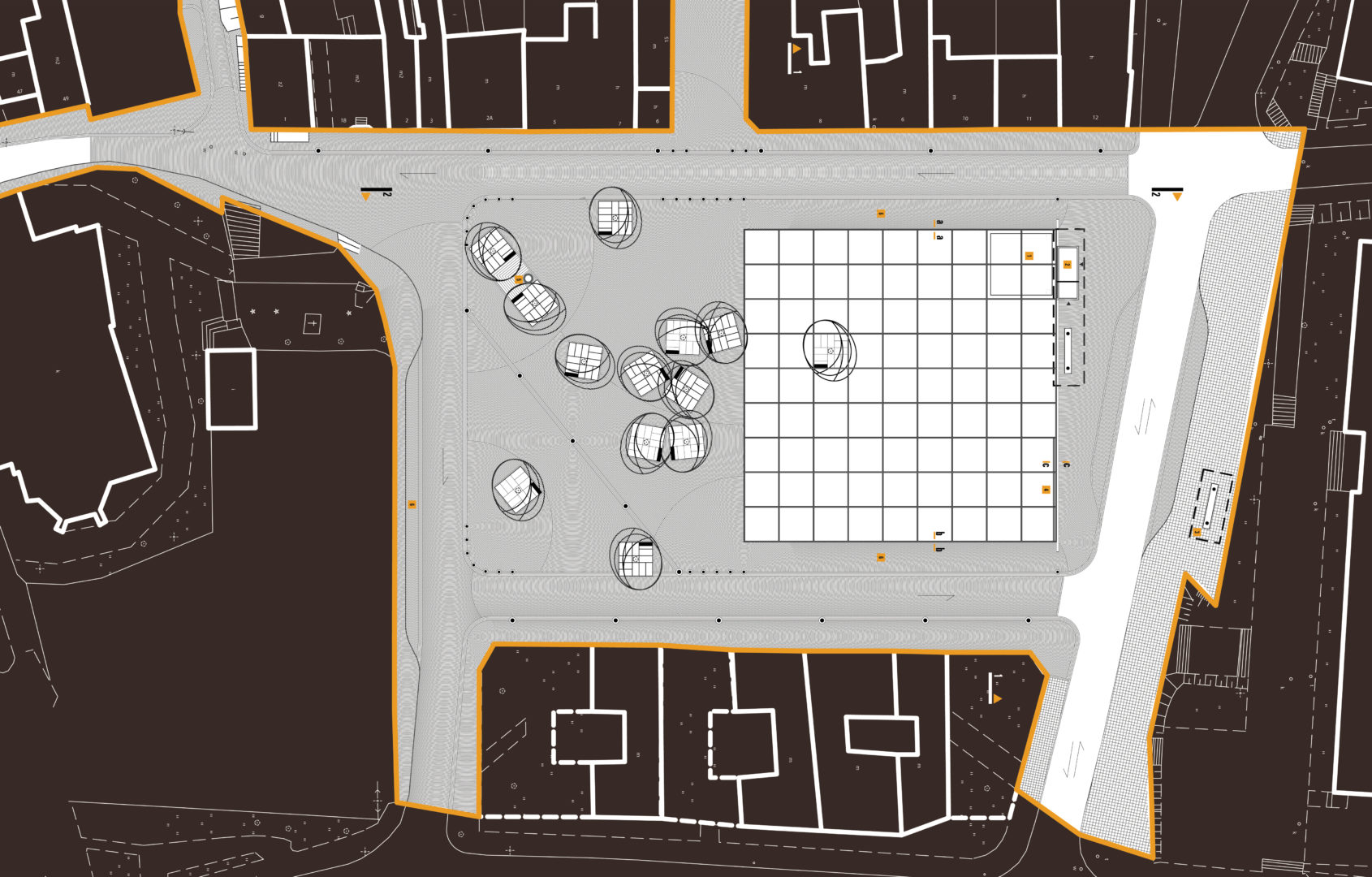 Wyeliminowano krawężniki wspomagając się jedynie słupkami granitowymi i słupami latarń. Wyjątek stanowi strefa północna zaprojektowana jako regularna kwadratowa płyta, zbudowana z pól o wymiarach 5 x 5m (płyty granitowe płomieniowane 50x50cm) rozdzielonych wąskimi pasami z kostki brukowej. Płytę wyprofilowano paraboidalnie doprowadzając do poziomu w części północno-zachodniej, gdzie proponuje się umiejscowienie estrady instalowanej w momencie organizowania imprez masowych (koncertów, festynów, dni Jana Długosza itp.). Wznosząca się w kierunku wschodnim powierzchnia ułatwia oglądanie występów. Podniesienie wschodniej i zachodniej krawędzi płyty oddziela ją optycznie od reszty rynku, a dodatkowo uniemożliwia wjazd samochodów na jej powierzchnię (detal „a” i „b”.)